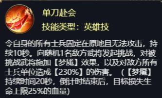 SP关羽的战斗机制颇具特色。其核心技能会在战斗中对敌方造成全等级固定25%最大生命值的流失,而升级后的效果则可达到100%最大生命值的固定伤害。这些伤害效果虽无法被常规方式抵挡,但可以通过抵消类技能进行防御。若对同一目标重复施加梦魇状态,其持续时间将减少3秒,因此释放时机尤为关键,需避免伤害被敌方的无敌效果无效化。此外,SP关羽在战斗开始时即可触发被动技能,获得高额攻击力加成,使其在前期拥有极强的压制力。再加上情谊技提供的强大生存保障,SP关羽在战场上具备极强的持续作战能力。尤其值得注意的是,其复活技能拥有20秒冷却时间,若敌方未能在其复活前完成击杀,则理论上SP关羽可实现连续复活,持续影响战局。