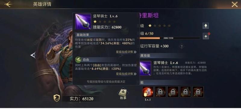 特里斯坦首技为骑兵增防,但在开荒阶段实际作用有限。