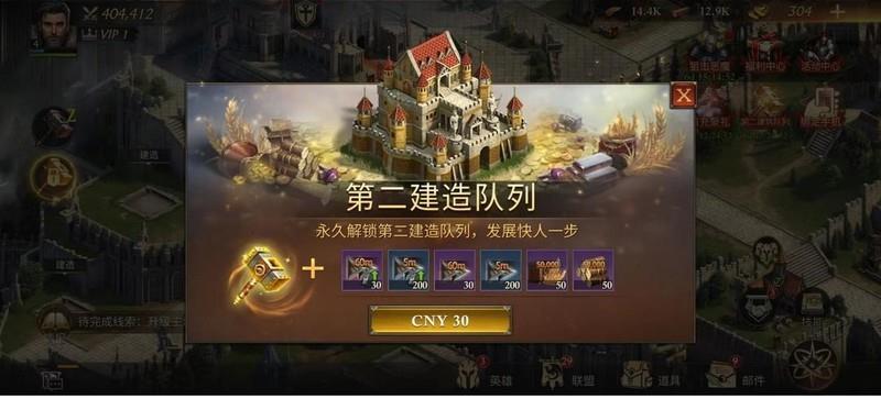 第二建造队列开启后可永久获得额外的建造资格,并附赠多张加速卡及木材、粮食等资源。建造是游戏中的核心玩法之一,前期升级耗时较短,容易被忽视,但要塞达到5级后,建造时间显著延长,此时双队列能大幅提升效率。若在首日激活,不仅能提高资源利用容错率,还能加快整体发展进度,为后续竞争打下坚实基础。