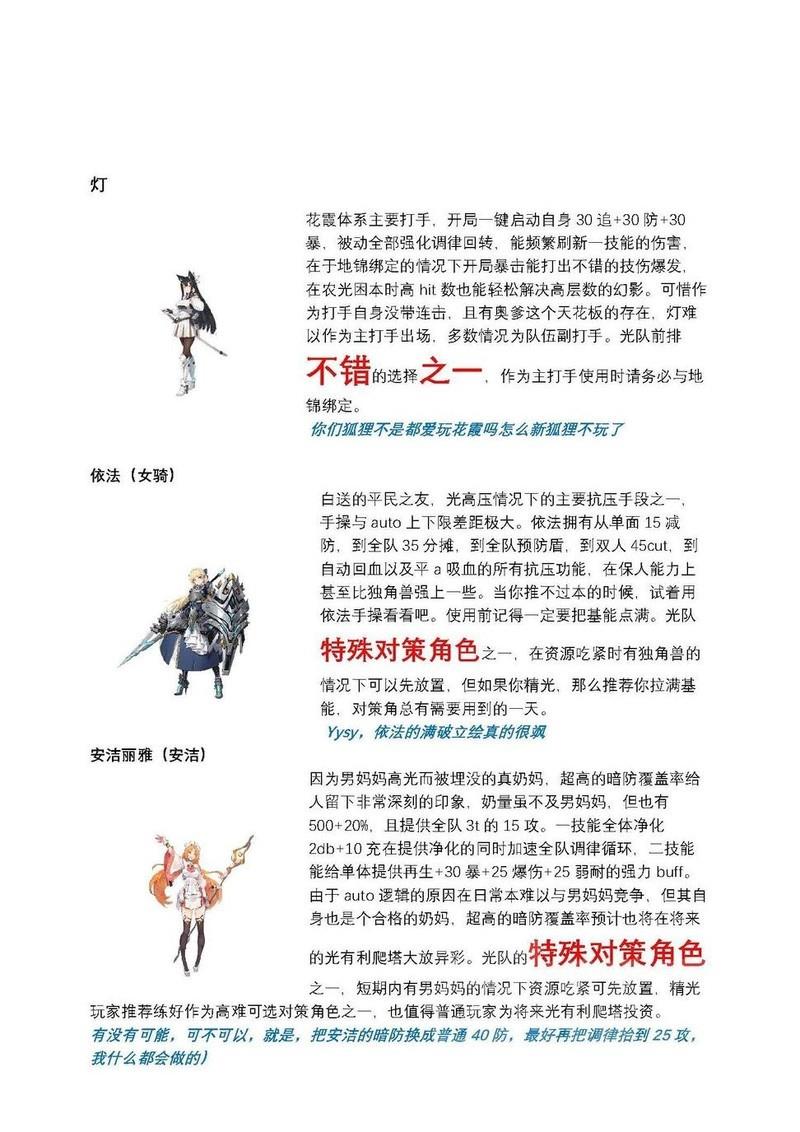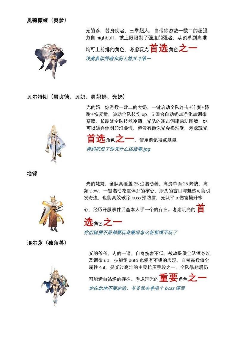 由于树宝这类GBF类游戏配队并无固定答案,新人玩家在组队前应先了解对手特性与战斗环境,并结合图中角色的定位与评价,灵活调整阵容搭配,以应对不同挑战。
