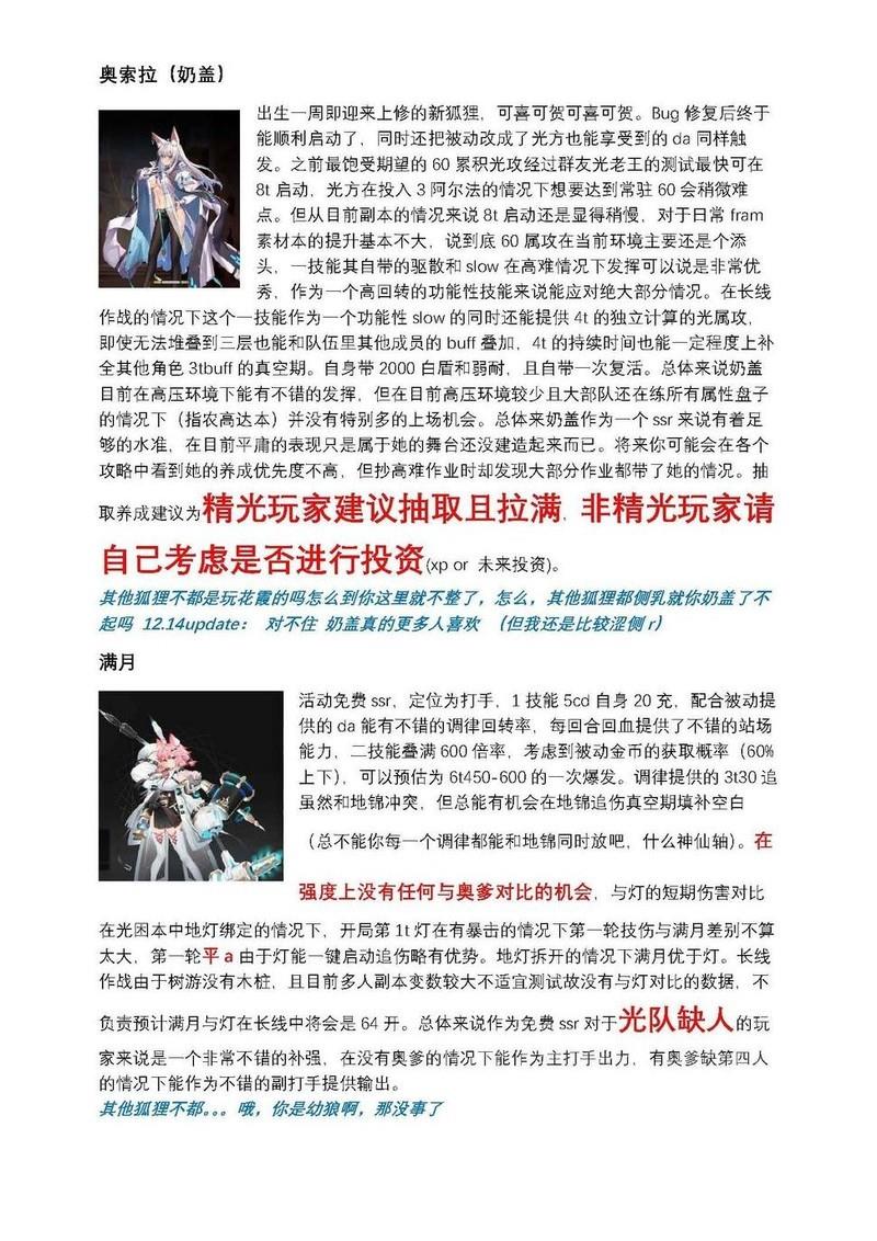 悠久之树光队角色指南已经更新至3.0版本,角色推荐已升级,最新内容为12月14日更新,具体信息可参考图示。
