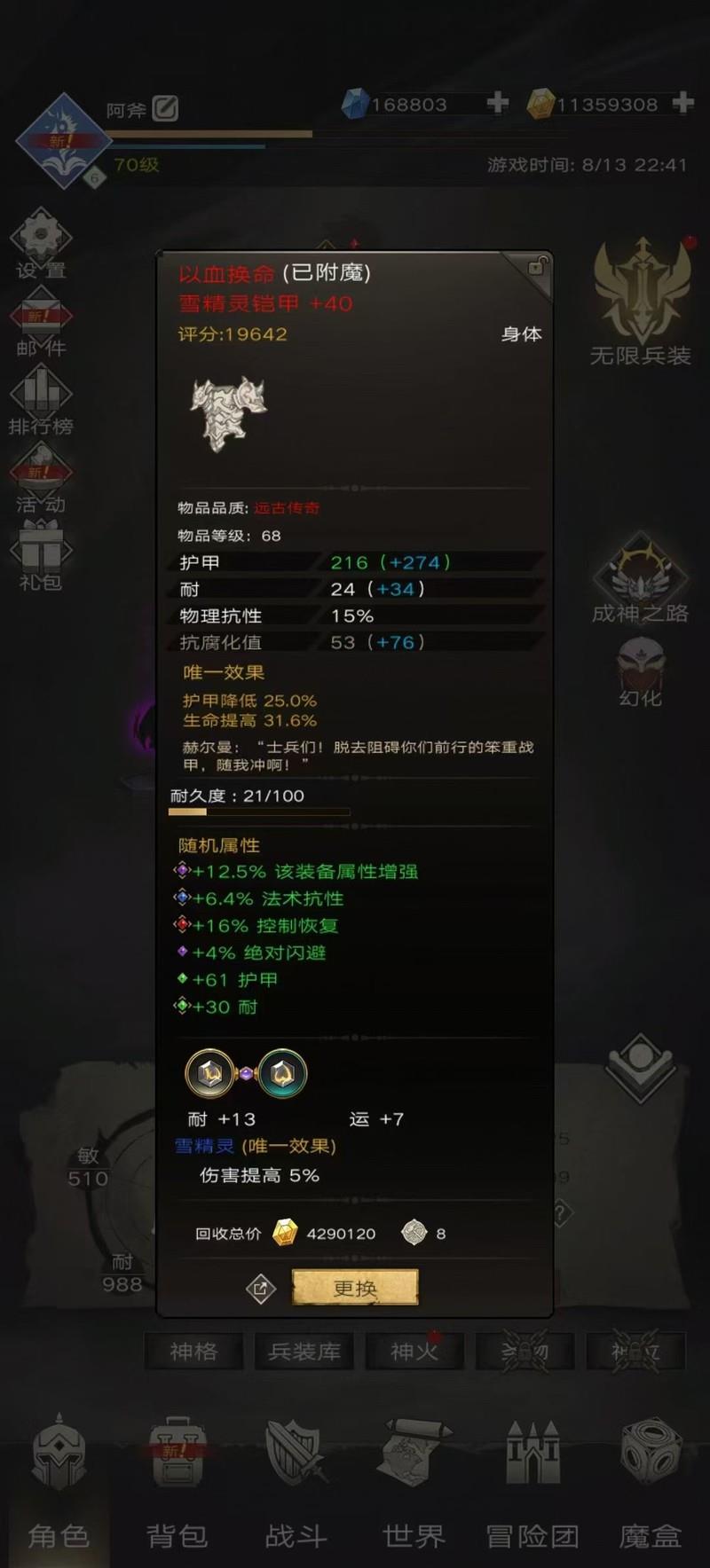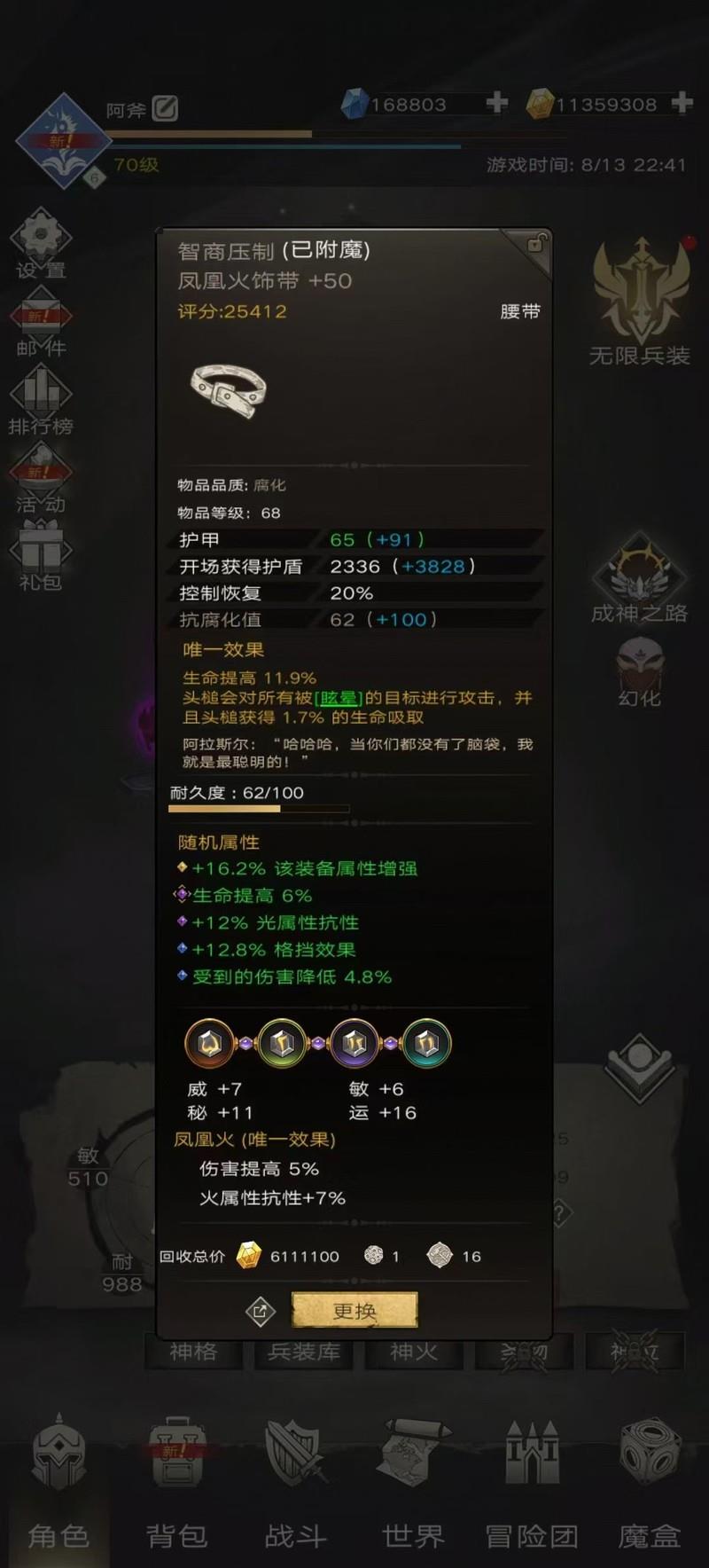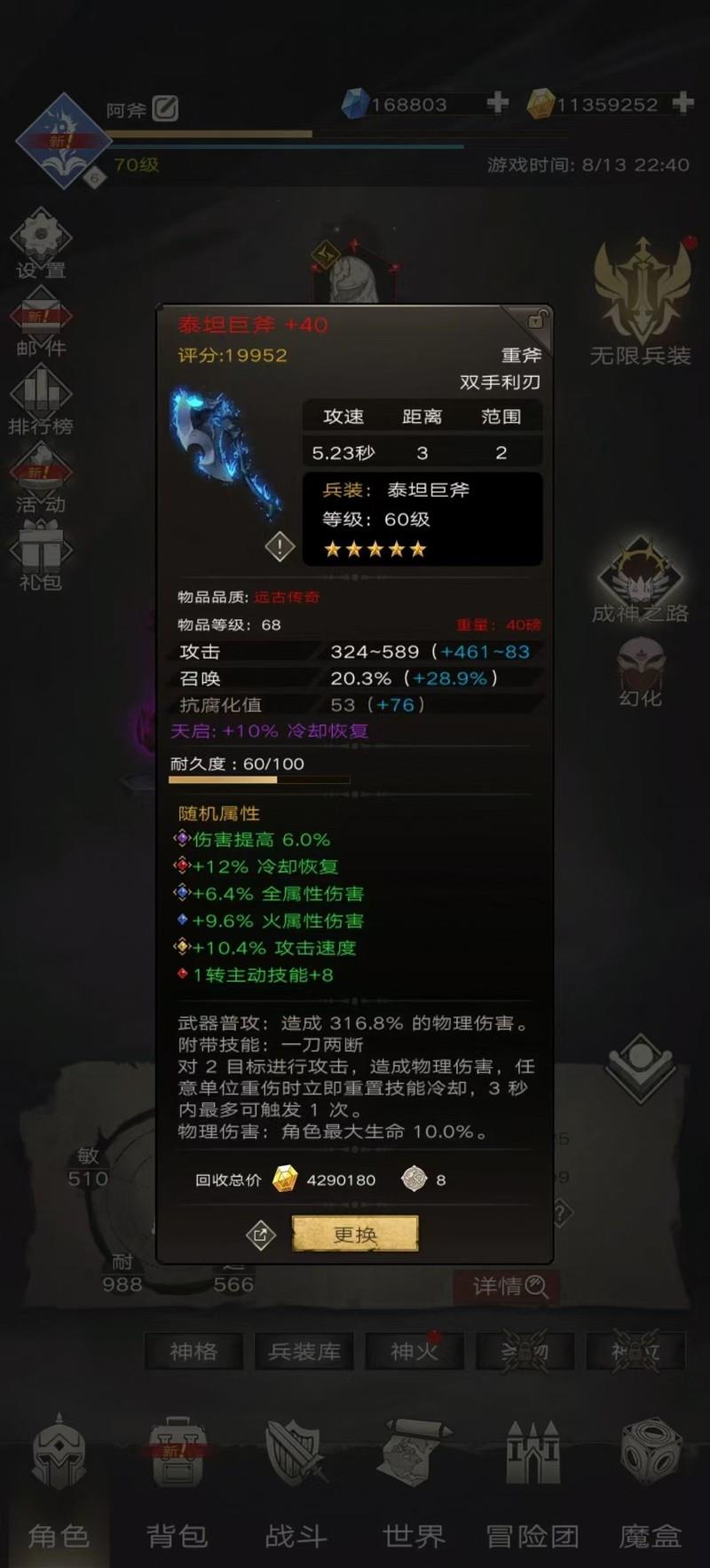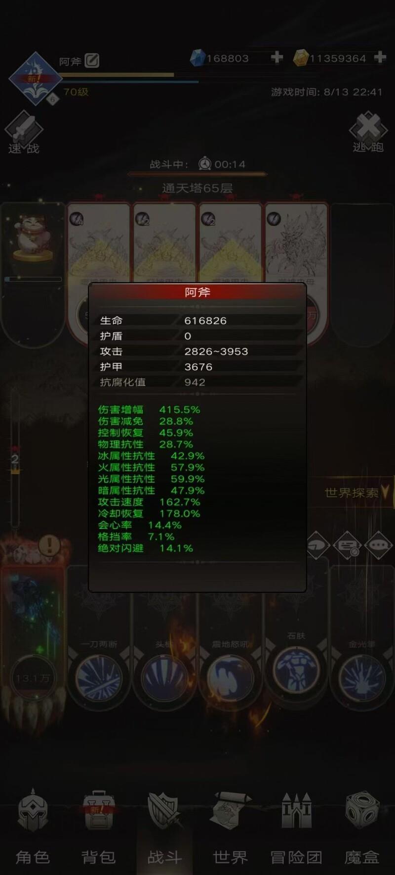 阿斧凭借这套装备成功挑战通天塔第66层。