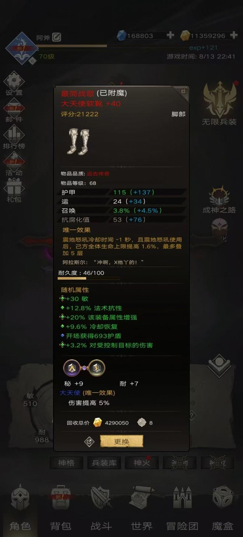 鞋子推荐软靴或护经,提升属性,减少冷却时间。