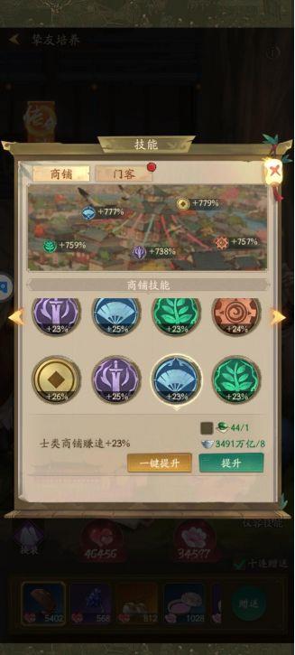 提升门客的赚钱速度,商会面板中的店铺收益也会随之提升,因此调整议事厅位置至关重要。后期主要依靠移动议事厅来提高整体收益排名。