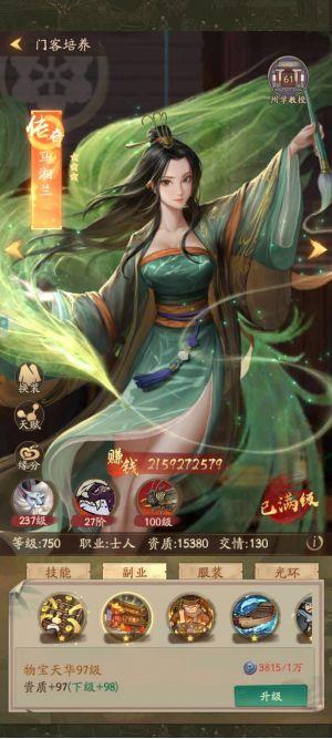 如果有资质榜,可以平均提升所有门客。由于我们老区已很久没开,所以我选择了马湘兰。预计还有150天左右会开放山庄。当门生达到10级时,将解锁一个新的资质槽,可用珍兽果进行提升,因此现在开始需要留意留存。这样在开启技能槽后,能直接提升马湘兰的资质。