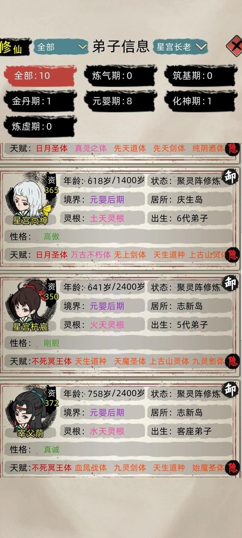 若嫌弟子刷新太慢,可将多个宗门打残,每派仅留一岛,定期查看是否刷出红体或天灵根弟子,发现后直接用本门资质较差者联姻,通过读档重来即可达成目的。