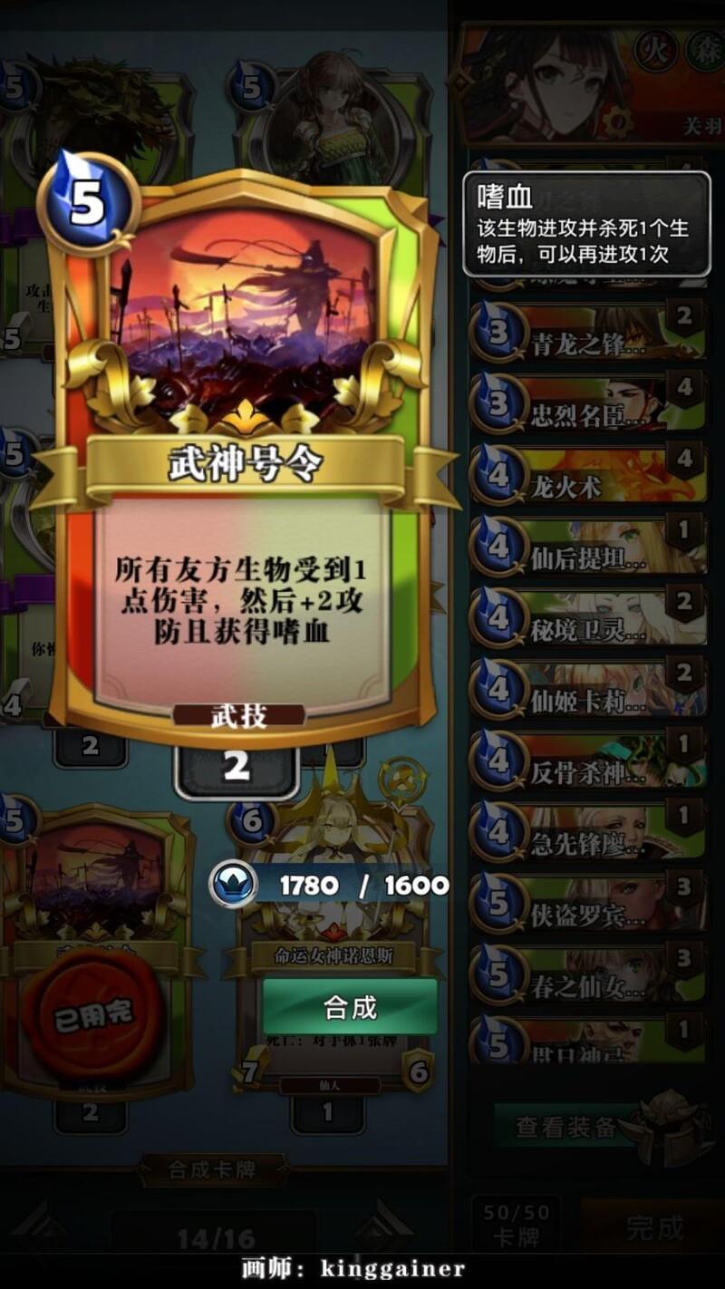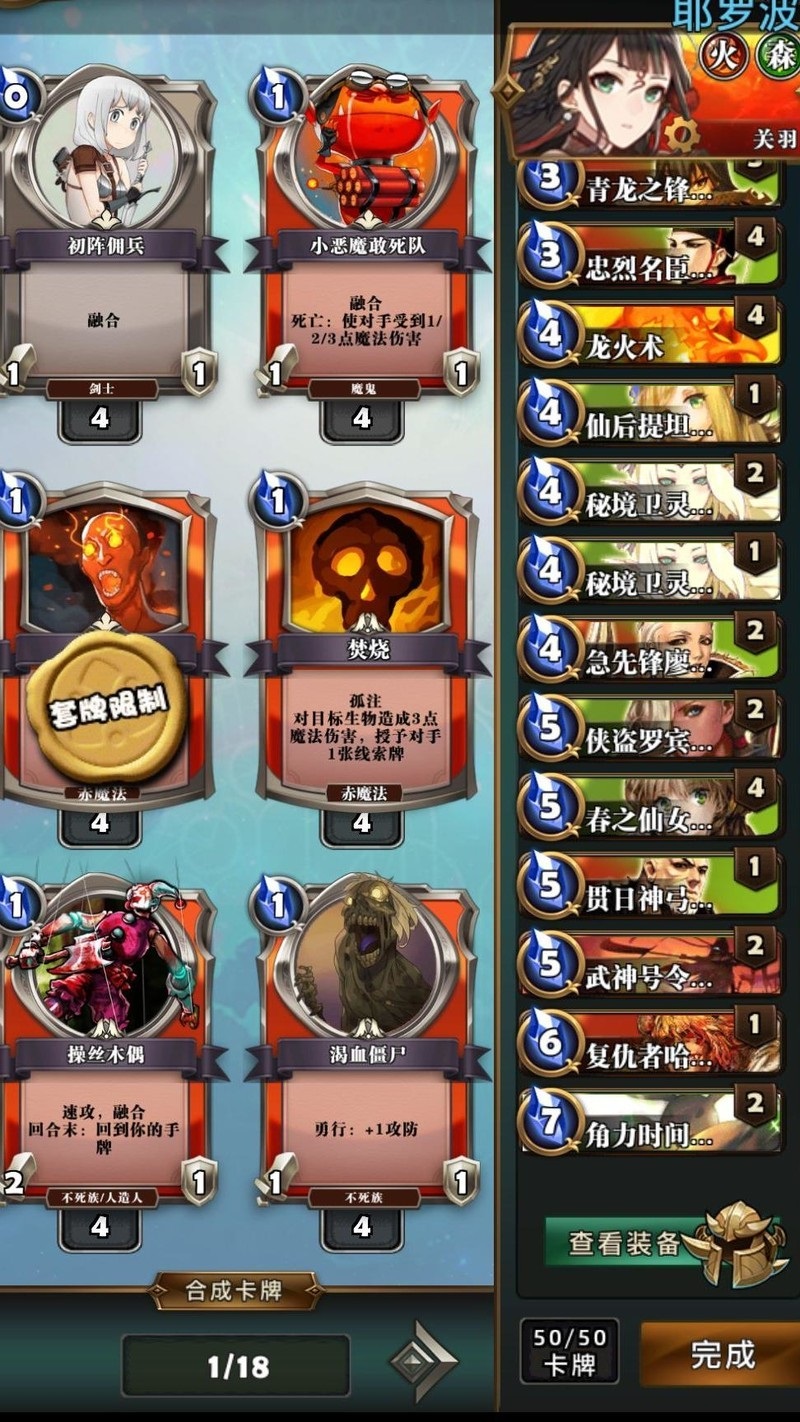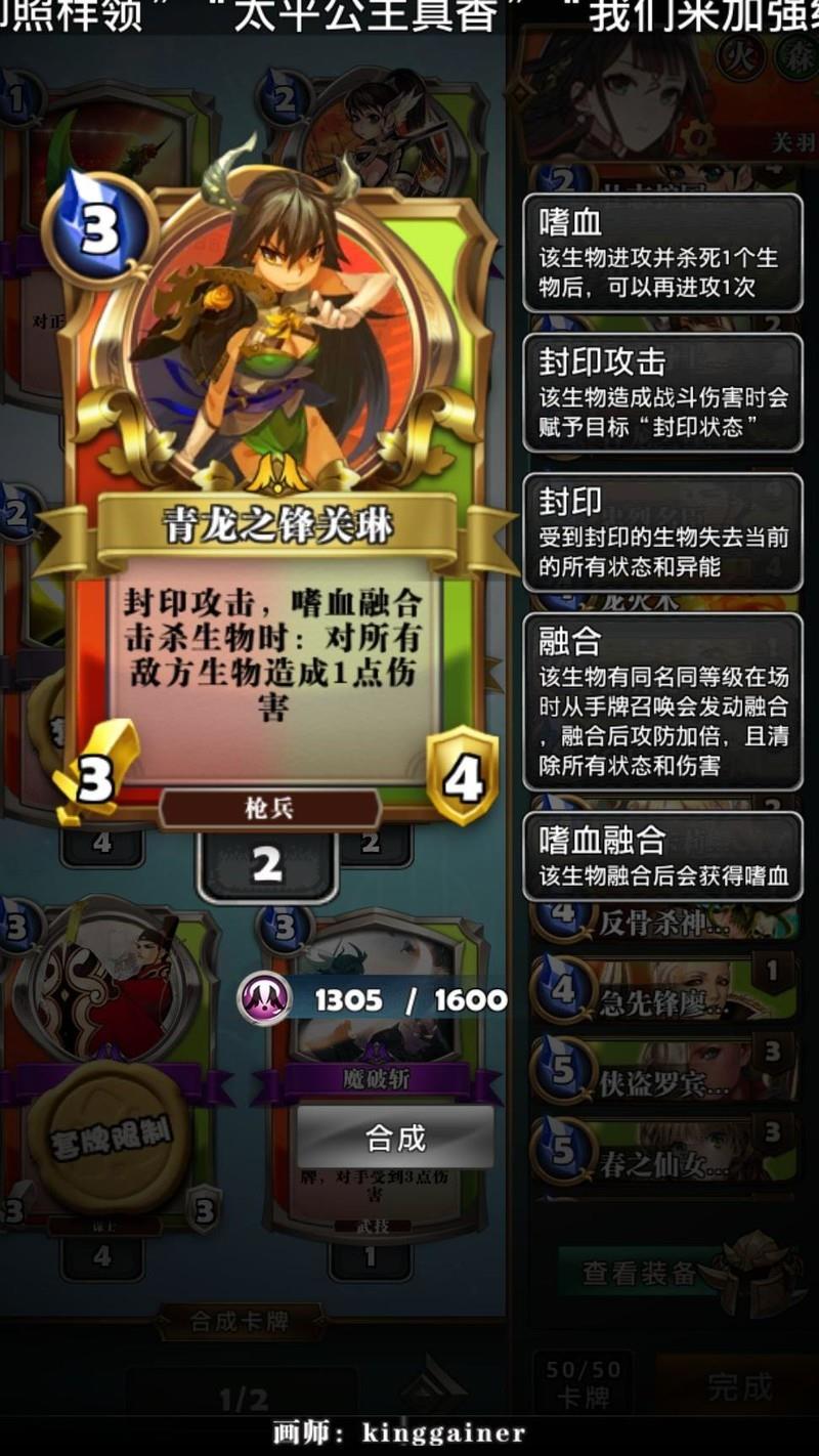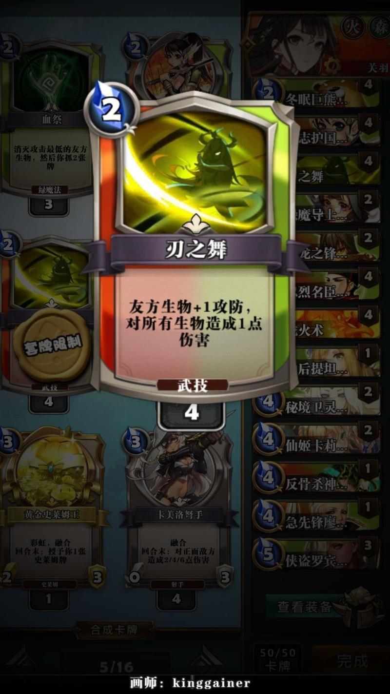 关羽通过牺牲生命值培育强力怪兽,配合绿色再生机制,极易形成令对手无奈的压制局面。