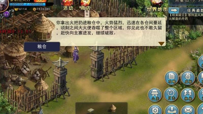 抵达副本后进入BOSS挑战阶段。若战力有限,建议直接前往粮仓击败宁尚青并点燃火源,推荐采用113阵型,随后迅速进攻柳白衣。