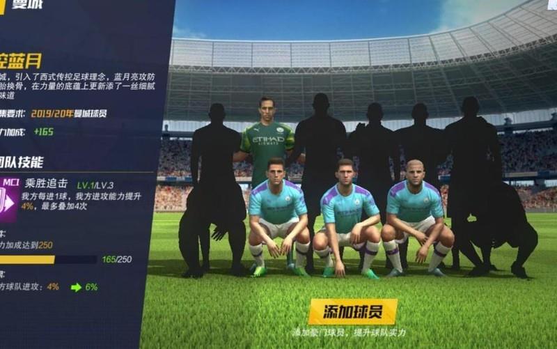 曼城 乘胜追击LV.1/2/3:我方每进一球,攻击能力提升4%至8%,可叠加四次,效果随等级增强。