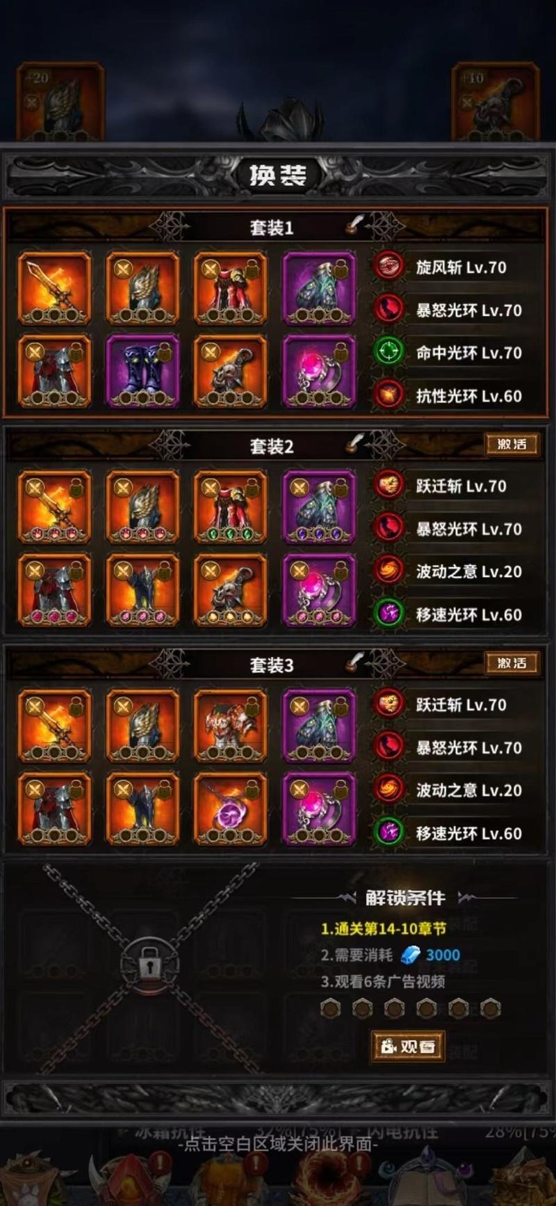 该套装主要用于提升刷怪效率,其余装备无需特别搭配,仅在进入挂机副本时穿戴,进入后立即切换至第二套装。当前版本套装种类有限,可前往官方群文件查阅图鉴,以我目前等级仅能装备所示部分。