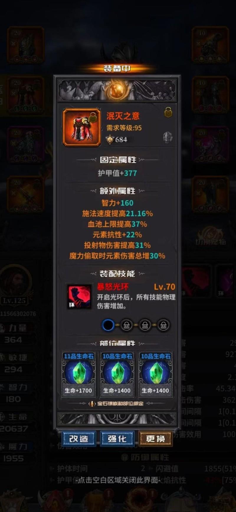 由于采用纯物理流派并搭配残暴天赋,不再依赖元素伤害,因此需重点提升物理点伤、物理伤害占比、总伤害加成及暴击伤害。攻击时附加生命偷取也有显著收益,头部装备词条同样适用。随着等级提升,洗练出的词条数值更高,将成为后期强化的主要方向。