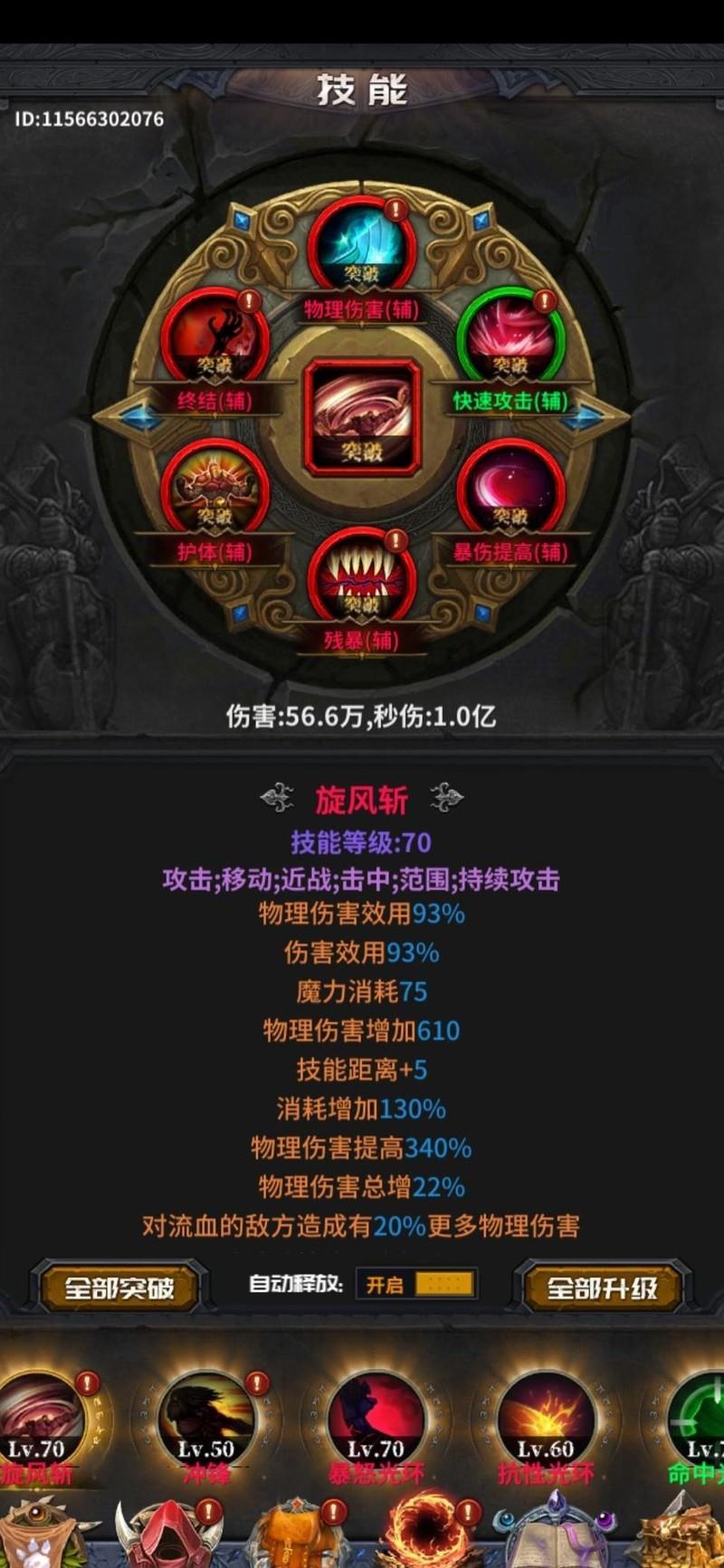 五件橙色装备构成核心体系,跃迁斩与旋风斩不可或缺,其独特属性无法通过紫色装备洗练获得,凸显传奇装备的独特魅力,多件已达115级。