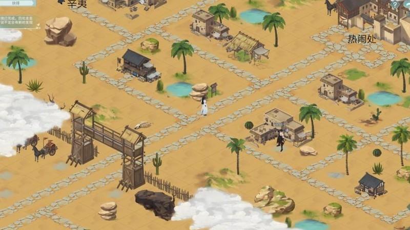 热闹处有辆马车,后方一棵树,点击可从树下挖出未开封的烧刀子。