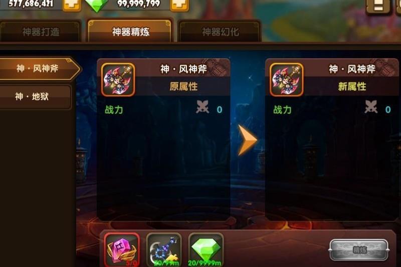 唯有武器晋升神器,方可激活精炼功能