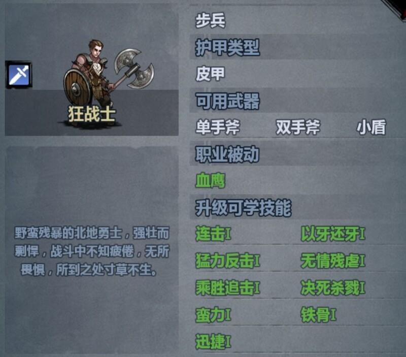 狂战压血是为了触发被动技能,当生命值低于30%时可获得增伤效果。北地甲提供减伤加成,圣物强化与连击效果也需在低血量下激活。