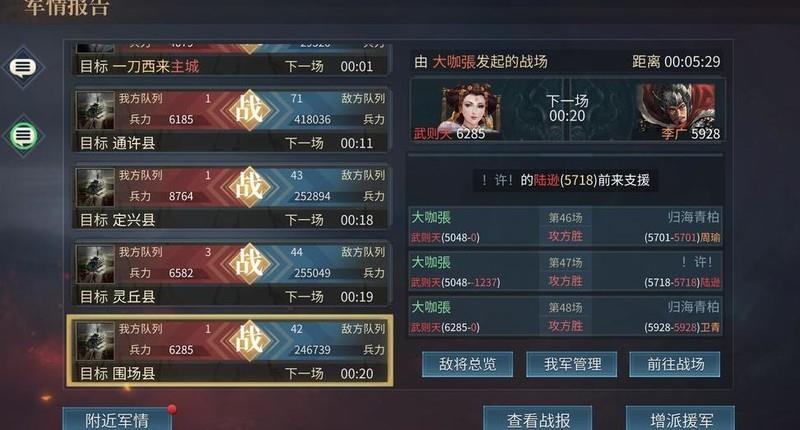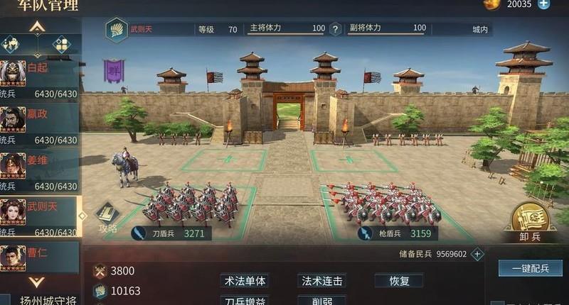 使用满星专武的武则天(约5.6万元宝加限时碎片补星),搭配任意阵容,可轻松无伤单刷50级及以下城池,稳定性极高,此为她相较另一位限时武将吕布的优势所在。