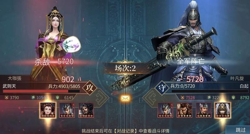 张良的眩晕搭配武则天的一技能法术,出手即控,敌方武将难以反击,随后凭借智谋技能持续输出,轻松将其击杀。