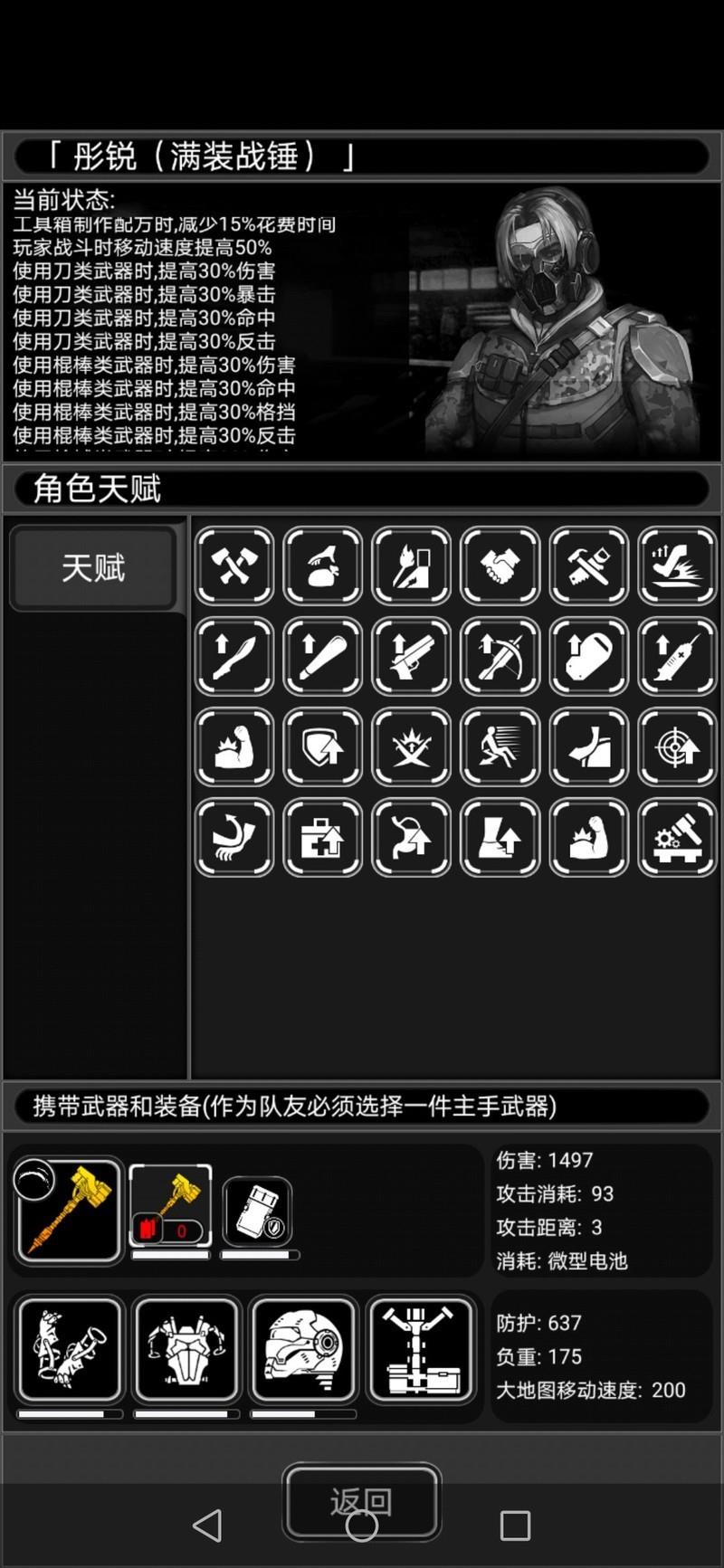 切勿轻信他人昵称,许多昵称与实际情况不符,部分人所持武器并非动力锤,甚至有人空手上阵、上传虚假数据,行为既害人又不利己。建议雇佣前务必打开角色界面仔细核查,防止上当受骗。所谓满战斗天赋,即战斗迅捷、棍棒、杀戮、战斗、盾牌、防御、闪避及反击等技能均达到满级状态,具体所示。