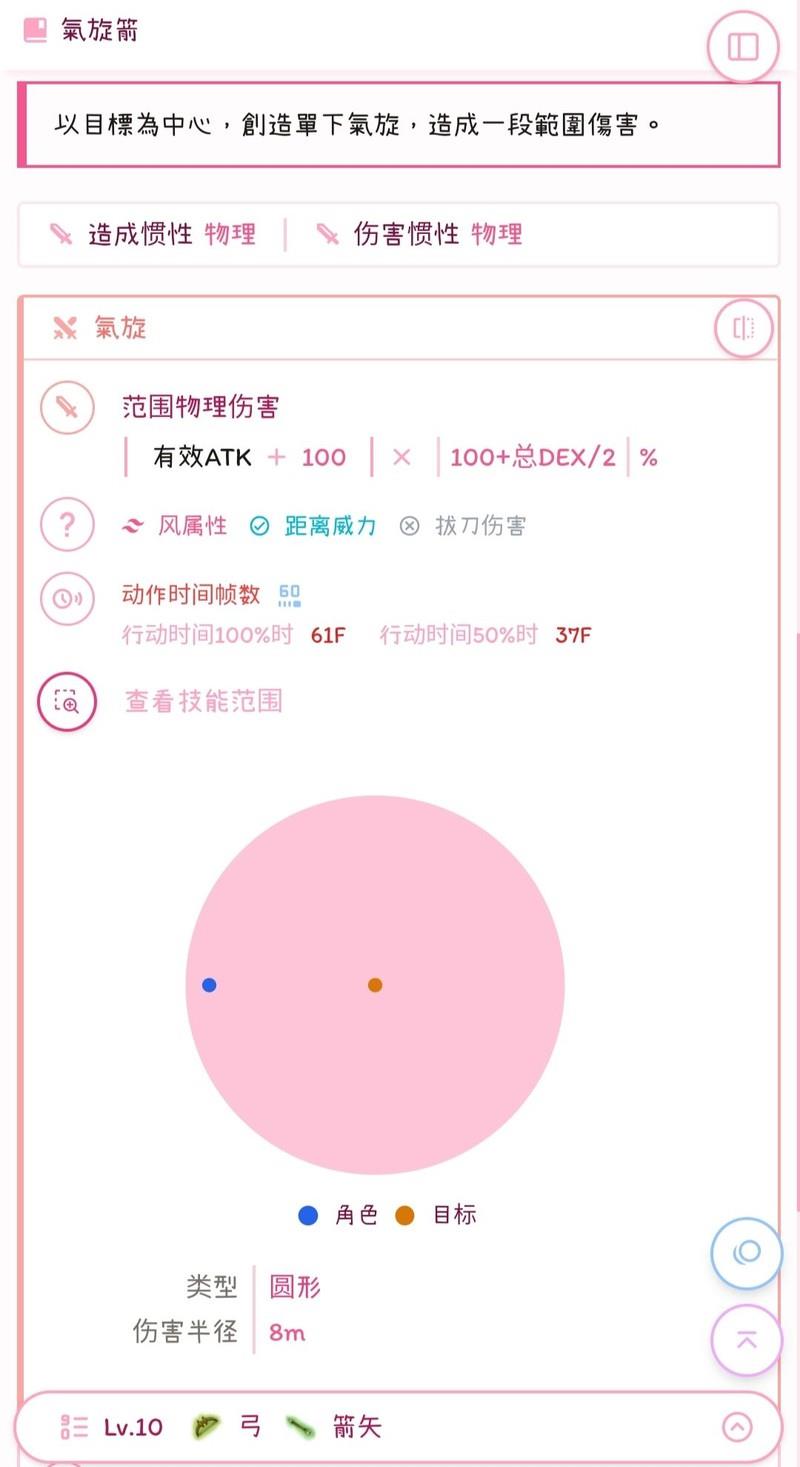弓箭专属技能,消耗1蓝,射程14,作用半径8。