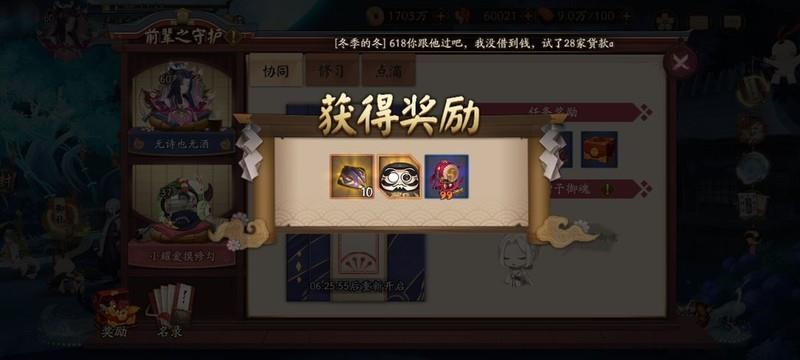 守护任务有奖励,好友互送三十勾玉,有机会获得黑碎。