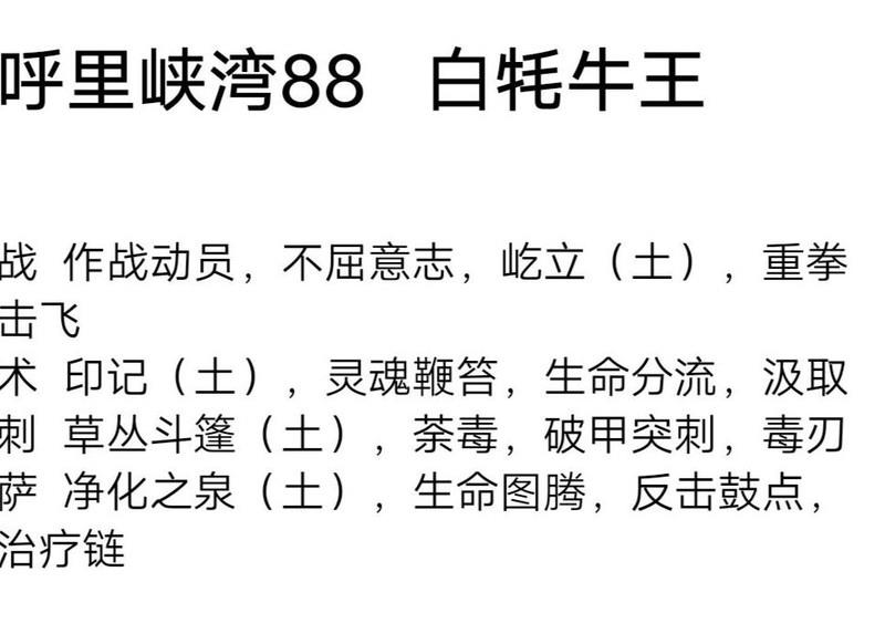 这个白牦牛王确实难倒了不少队伍。我们团队在战斗中给萨满、术士和刺客补充了攻击、生命和防御各10%的增益,战士则只加了5%,最终勉强通过。之前也提过土拨鼠的摆放位置,建议你们按此尝试挑战。如果成功击败,请务必分享经验,方便我们后续一起刷本,感谢你的帮助与分享。