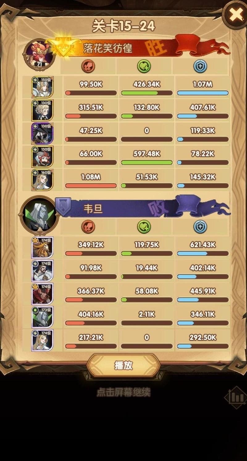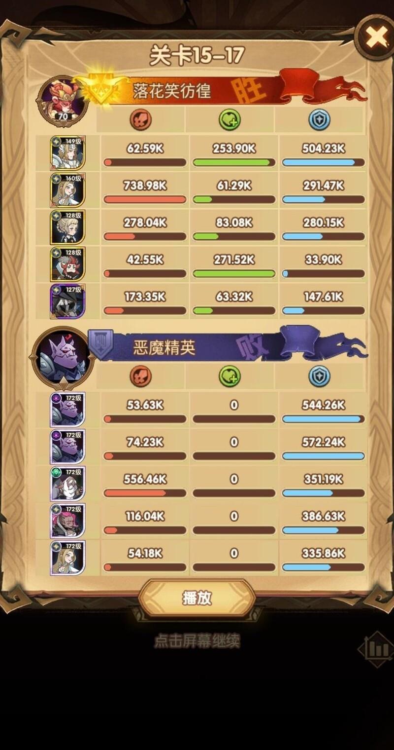 15-24阵型推荐:光盾携带胜利号角,尽早开启加速大招;光女搭配攻击类神器;女仆穿戴防御装备,确保生存,输出足够即可通关。