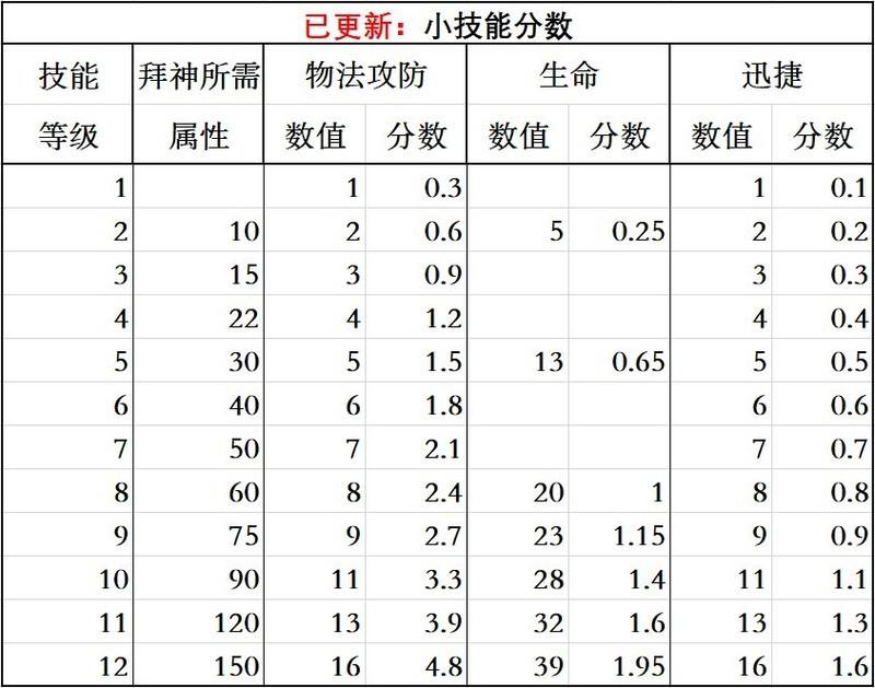 技能属性与分数一览