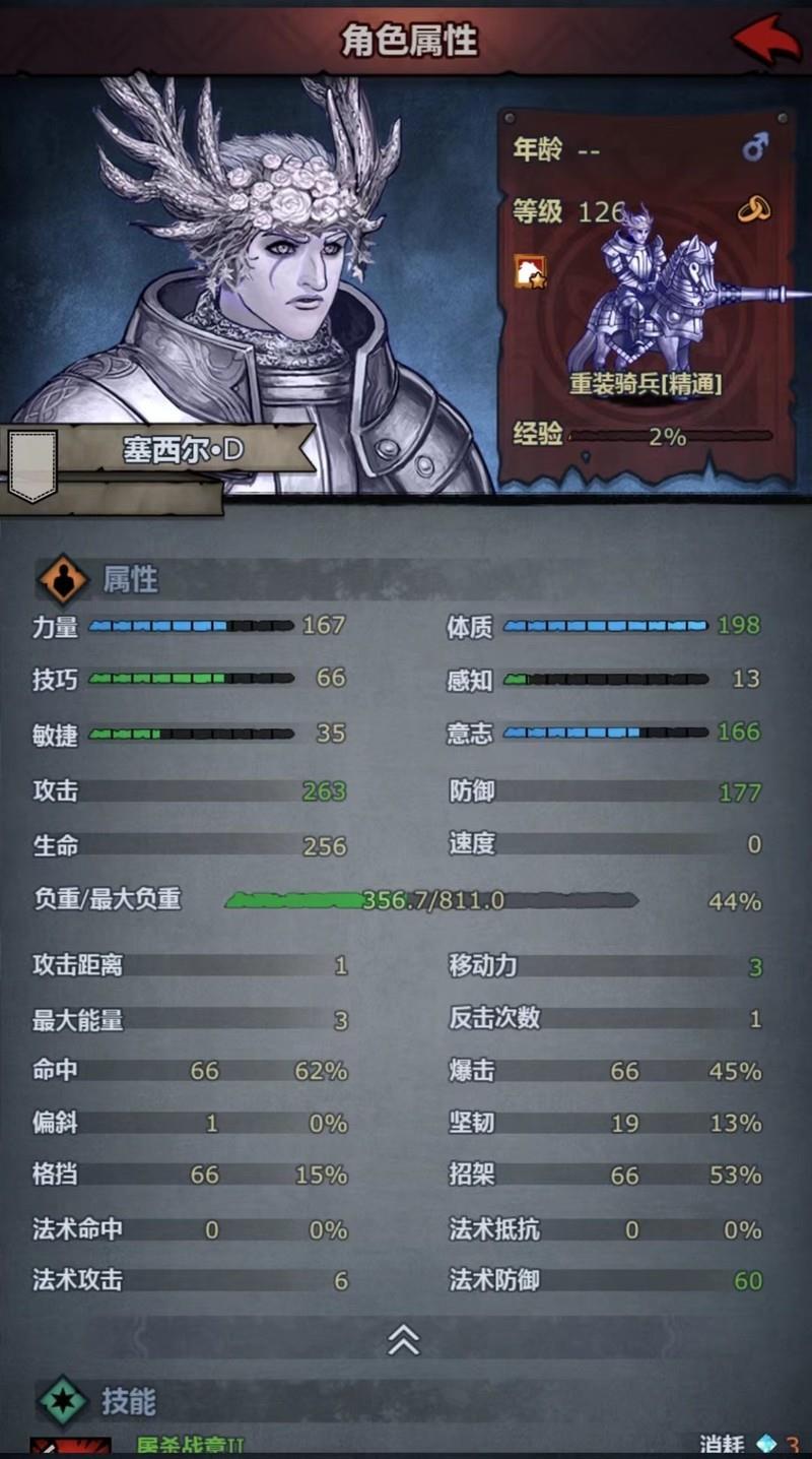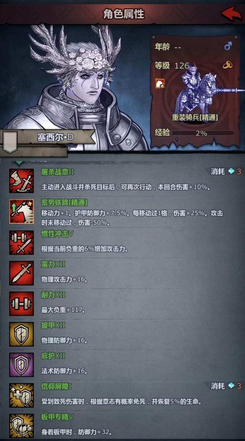 分析非黑骑角色在培养重骑时的加点策略。持续使用重骑职业只能掌握三个技能:活力X、耐力IX和蛮力IX,看似缺少一个技能格,其实那是为披甲技能预留的位置。通过对比铁甲军士的技能可以发现,其两个小技能与重骑重叠,而不重叠的披甲技能却能免费升至X级,提供高达11点的防御加成,非常实用。