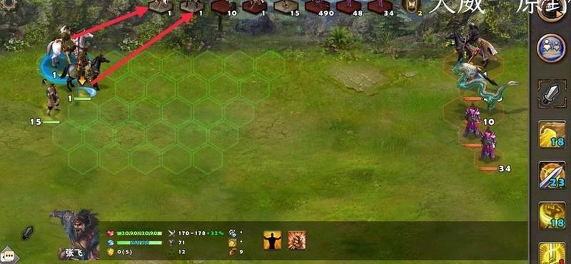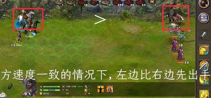 假设刘备和张飞的速度均为9,且刘备位于前方①号位,张飞在后方②号位。进入战场后,站位靠前的单位先行动,因此①号位的刘备将优先出手。