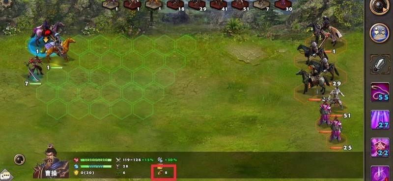我方曹操与张辽均为8速,曹操位于前方先行出手。