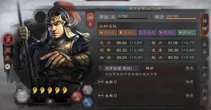 周泰在三国志战略版中堪称顶级辅助,吴国玩家抽到后常用于组建虎臣弓或吴骑阵容,也可与孙权搭配使用。即便选择刘备剧本,在拥有双S级盾兵适性的情况下,即使没有鲁肃,依然能搭配出强力的吴盾队伍。高红度的周泰表现尤为出色,整体强度媲美传统的鲁肃吴盾或吴枪组合,极具实战价值。