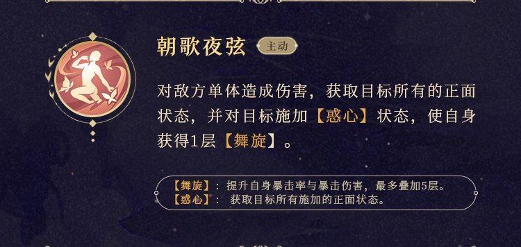 获得增益或触发效果时,会叠加舞旋层数,叠满后使敌人陷入易伤状态,若此时被暴击则会眩晕。