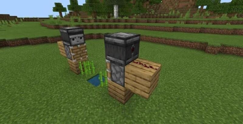 在甘蔗后方放置任意方块,于其上安装朝向甘蔗的活塞,再于活塞上方安置面朝甘蔗的侦测器即可。