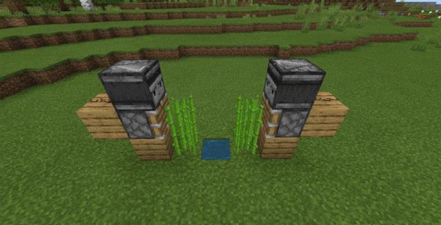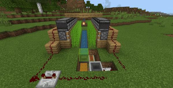 甘蔗长至第三格时触发侦测器,激活活塞将其推倒。