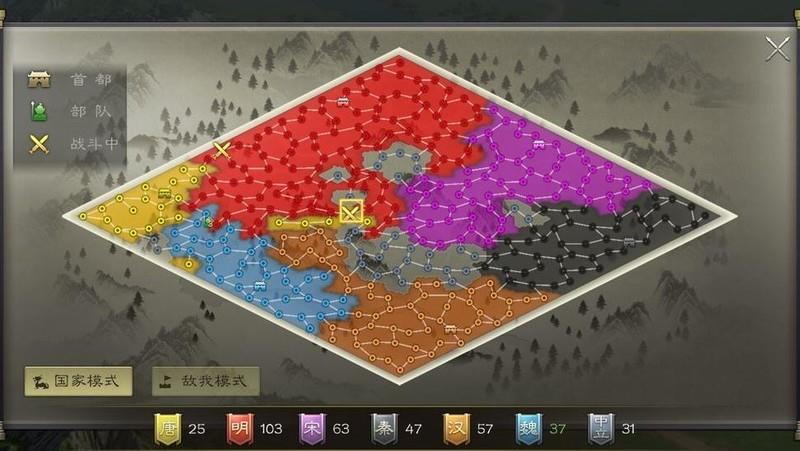 此时各方势力已相互毗邻,争夺城池在所难免,五级城常成为战事焦点。为夺取战略资源,主公们激烈角逐。在抢占要地的同时,还需警惕敌方突袭,随时应对两线作战的严峻局面,局势紧张而复杂。