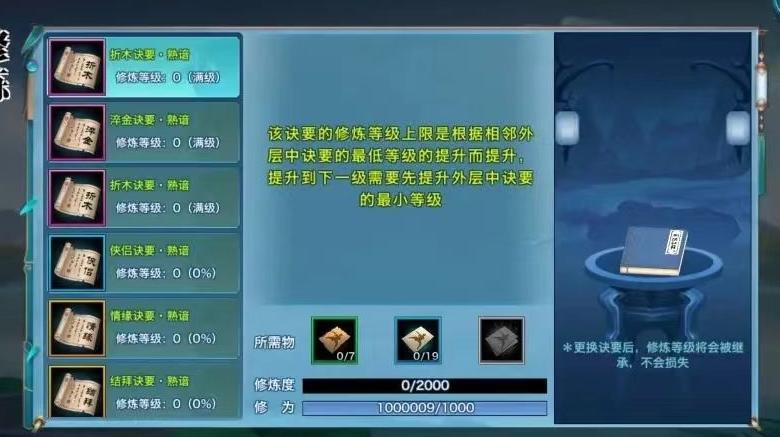 在新剑侠情缘的阵法系统更新后,现在分成了三层结构。最外层还是原来的六本关系诀要,中间层加了五行诀要,而最里面则引入了全新的阵法诀要。想要升级这些诀要,需要用到一些特定的修炼道具,比如每本提供500修炼度的阵法修炼精要和每本提供100修炼度的阵法修炼残卷,这些都能帮助提升整体的阵法修为。