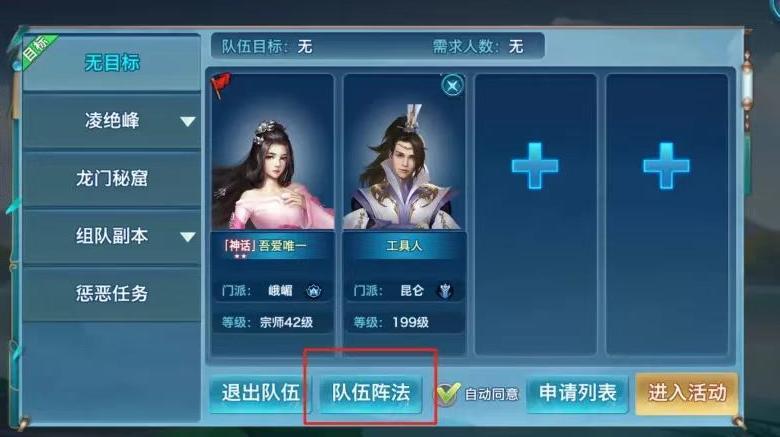 若非阵眼成员组队,则新队伍默认不启用阵法诀要,需队长在队伍阵法中重新激活方可生效。