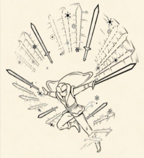 释放技能可造成六次伤害,消耗全部剑气提升威力,每点剑气增加3点伤害系数,附带远程不可格挡效果,内力消耗500,技能冷却3回合。