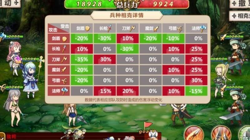 游戏中设有六个兵种,彼此之间存在相生相克的机制。具体的克制关系可在战斗时点击相克关系按钮查看详细说明。