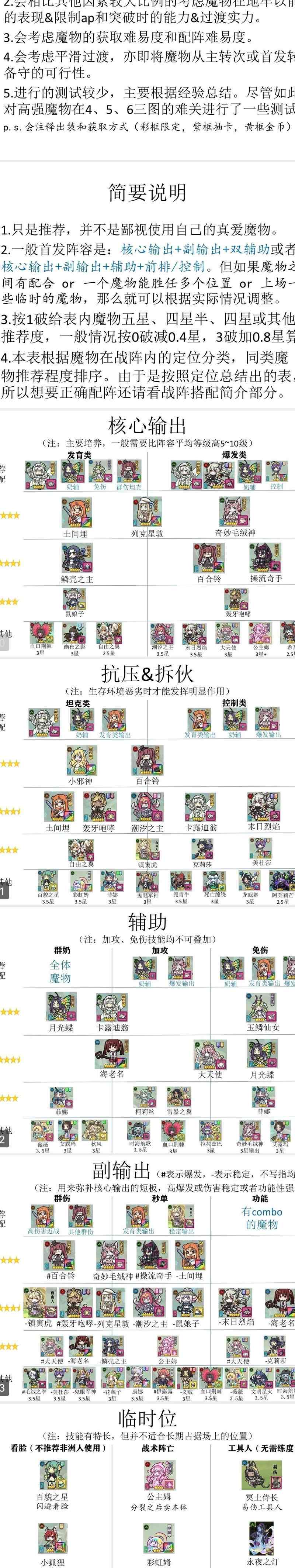 最近发现不少玩家对地牢表现特别感兴趣,我则重点测试了8图和9图的几个关卡,像瓦基尼三兄弟、天界格莉姆、9-14、魔化圣教军、b-14史莱姆和k-15双子恶魔这些。虽然这些关卡确实比地牢难度更高,但未必能更准确地反映魔物强度。我测试时,基本使用3破配置,主核搭配是50级40队,其他搭配有50级配45队,或者加上70级的强力奶妈。某些魔物因为没测试或资质不够,可能有些遗漏,但整体数据差距不大,还是有一定参考价值的。