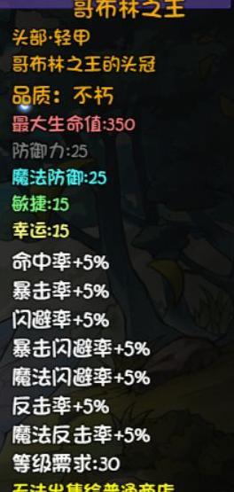 掉落位置:哥布林王国右上方首领处