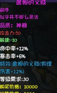 强力副手,提升物伤与暴击,略降敏捷,实为隐藏副本应得之装备。