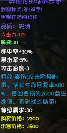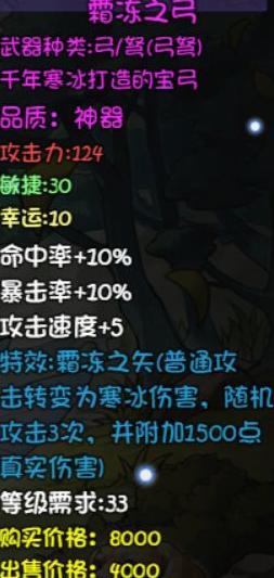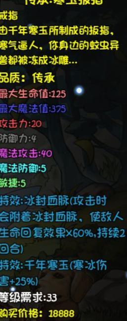 普通攻击附带降低治疗效果,配合哥布林副本的毒矛可高效输出,自带25点冰属性伤害加成,适合冰法、雪青寒等角色使用。