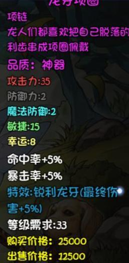 提升最终伤害的项链,附带良好暴击属性。