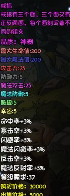 生长属性的戒指类宝物已被售出,图暂缺。