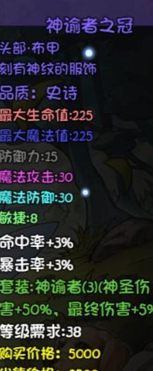 提供元素增伤与暗火增伤,均附带暴击属性,是过渡期性价比较高的法术装备选择。