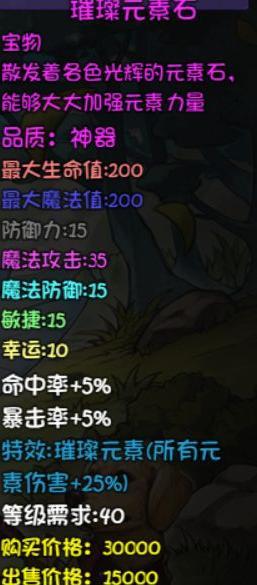提升元素伤害,属性均衡全面的珍稀宝物。