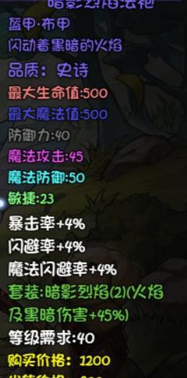 四十级后阿语解锁暗影形态,黑暗属性装备价值提升,两件套提供45点属性伤害加成,并附带暴击效果,尤其适合暗系与火系输出职业使用。