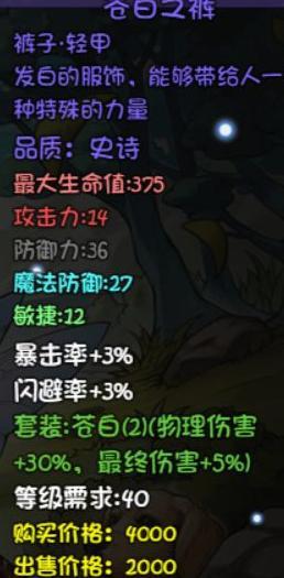 提升物理与最终伤害,自带暴击效果,巧妙利用护腿栏位,非板甲职业首选,板甲职业在刀锋前亦有出色表现,性价比极高。