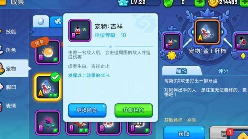 每次第三次攻击释放一排牙齿,建议搭配欧皇或氪金类宠物如吉祥、夹子使用。
